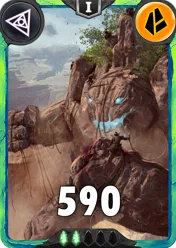 Dans un paysage désertique, une formation rocheuse colossale émerge du sol, évoquant la silhouette imposante d’un géant de pierre. Recouvert de végétation luxuriante au sommet, ce titan minéral semble fusionner harmonieusement avec la nature. Ses bras et ses jambes, formés par des blocs massifs et anguleux, suggèrent une force brute et inébranlable. Les détails minutieux des fissures et des aspérités de la roche ajoutent une texture réaliste, tandis que les ombres projetées par le soleil renforcent l’impression de grandeur et de majesté de cette entité naturelle.